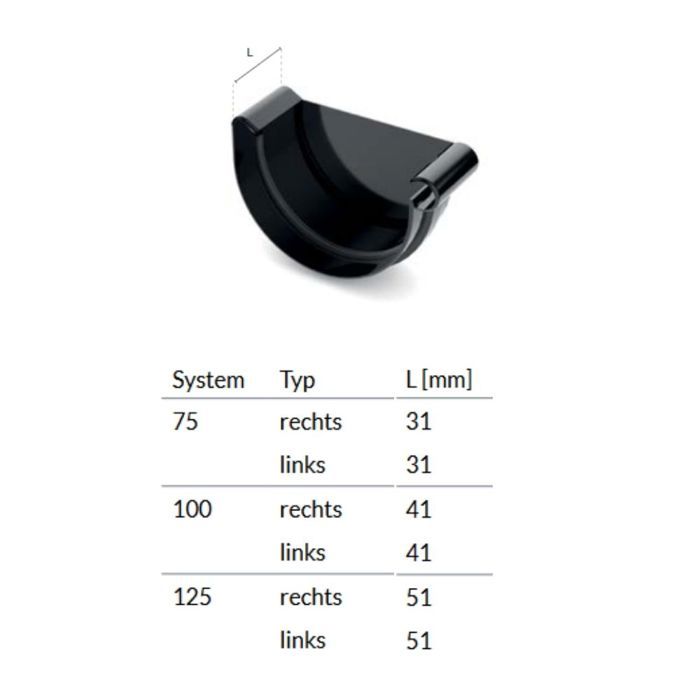 Graphite Left Gutter End Cap System 125 - Optimal Protection — buy online with free worldwide shipping!