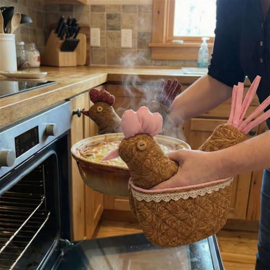 Heat resistant and durable, these mitts can be conveniently placed near the microwave or stove for quick access to hot food. Perfect for chicken decor enthusiasts, they enhance your kitchen's aesthetic while offering practical protection. An ideal gift for friends or family who appreciate unique, functional kitchen accessories.