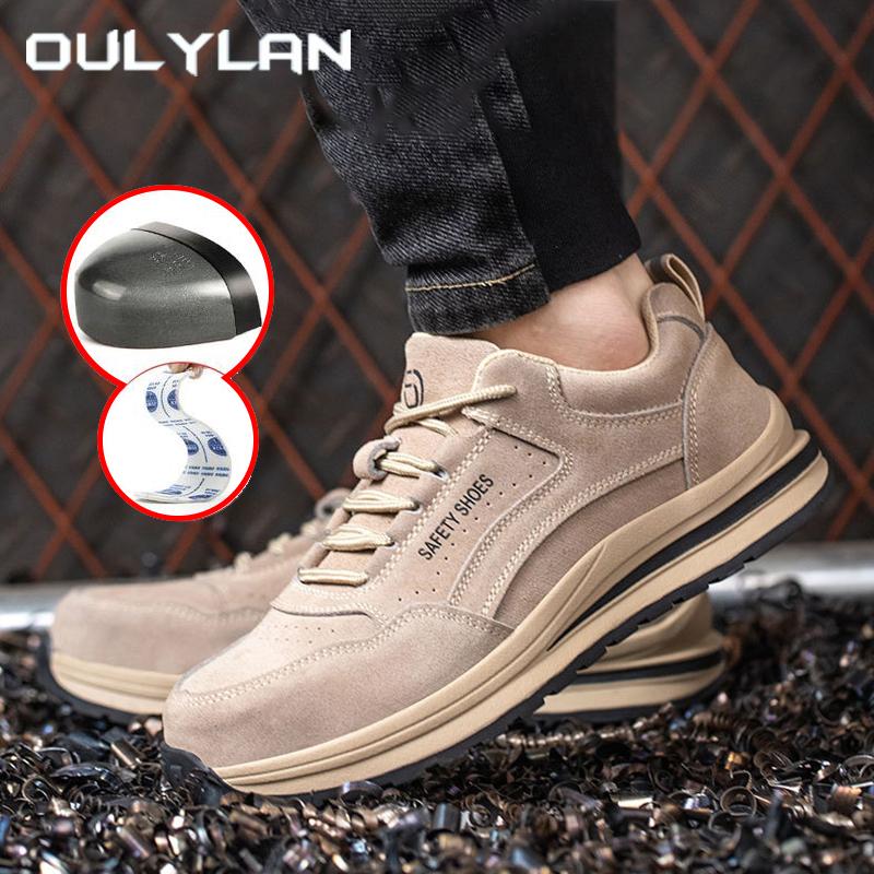 Oulylan Men Anti Smashing Safety Shoes Steel Toe Breathable Anti Slip Work Boots Comfortable Anti Puncture Protective Footwear