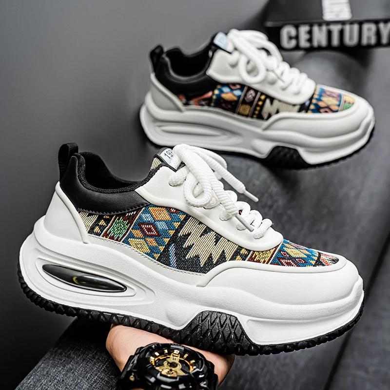 Fashion Versatile Running Shoes White Men Sport Shoes Platform Thick Sole Casual Sneakers Breathable Lightweight Tennis Shoes — buy online with free worldwide shipping!