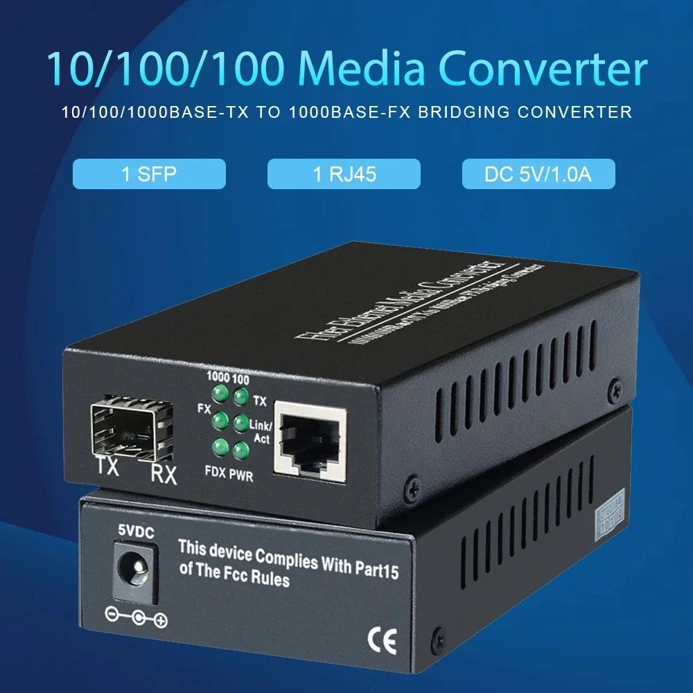 1PCS Gigabit SFP Media Converter SFP To RJ45 Transceiver 10/100/1000M Fiber Optic Switch With 20KM SC SFP Module