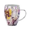 350ML Double Wall Glass Coffee Mug Dries Flower Insulated Glass Cup with Handle Clear Espresso Latte Cappuccino Milk Juice Tea Water Cup