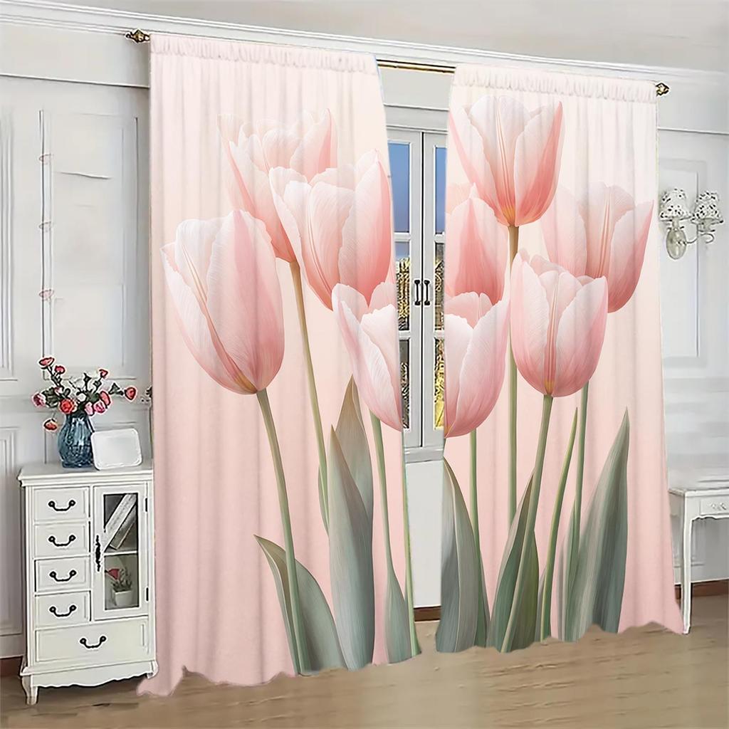 2 Piece Pink Tulip Curtains for Family and Friends Sunshade and Privacy-protecting Pole-style Curtains