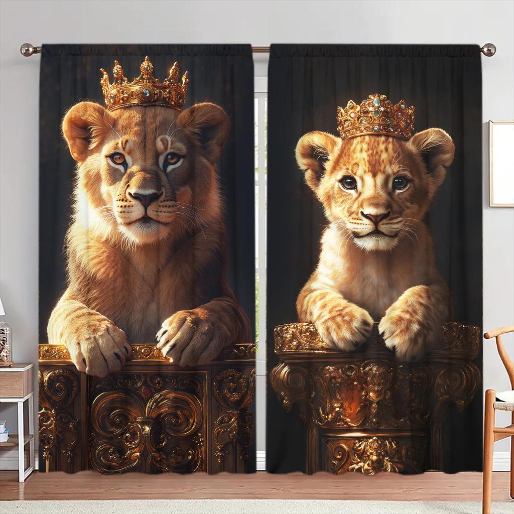 2pcs Lion King Father and Son Printed Curtains Shade and Privacy Protection Suitable for Decorating Various Rooms