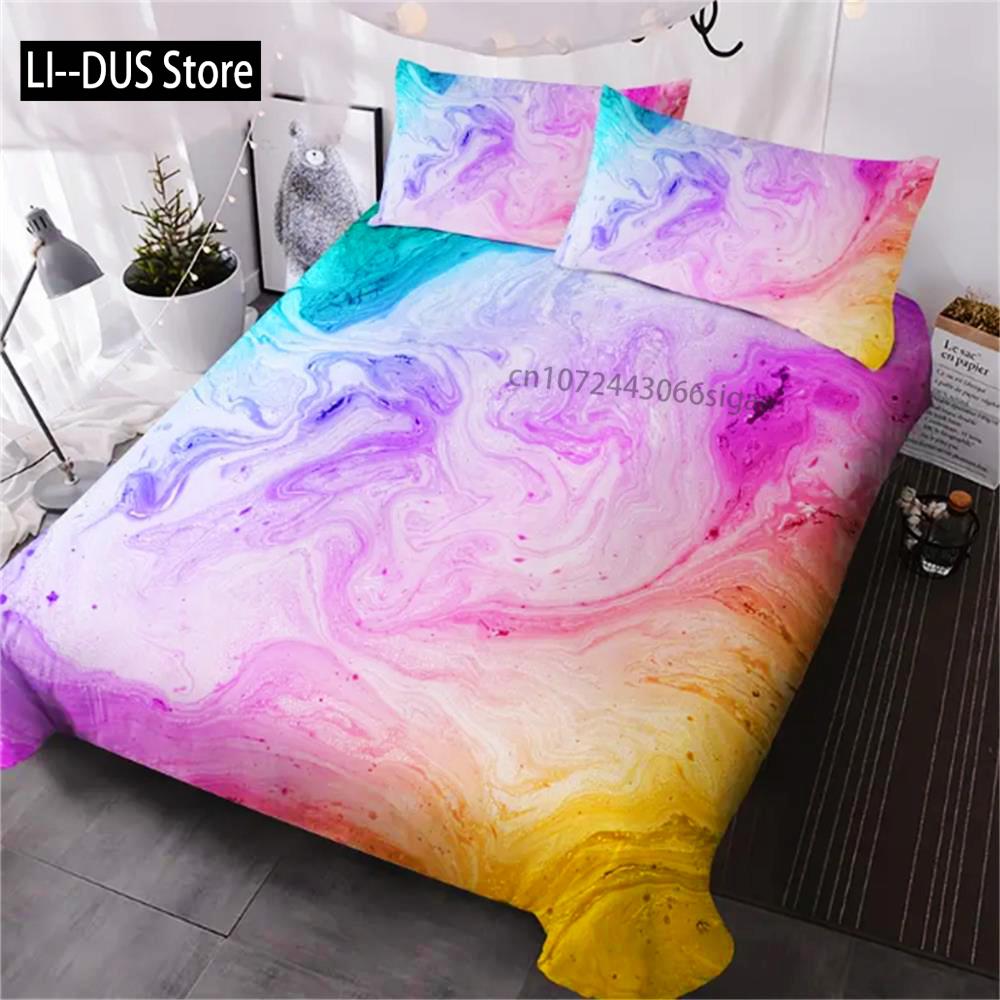 3 Pieces Pink Blue And Purple Quicksand Duvet Cover Set Colorful Marble Bedding Set Abstract Art Bed Set Bright Girl Bedspread — buy online with free worldwide shipping!