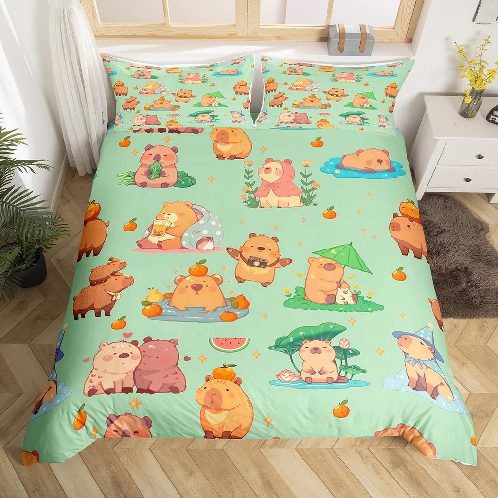 Homewish Cartoon Capybara Teens Duvet Cover SetLotus Flower Floral Bedding SetKawaii Orange Watermelon Bed Set — buy online with free worldwide shipping!