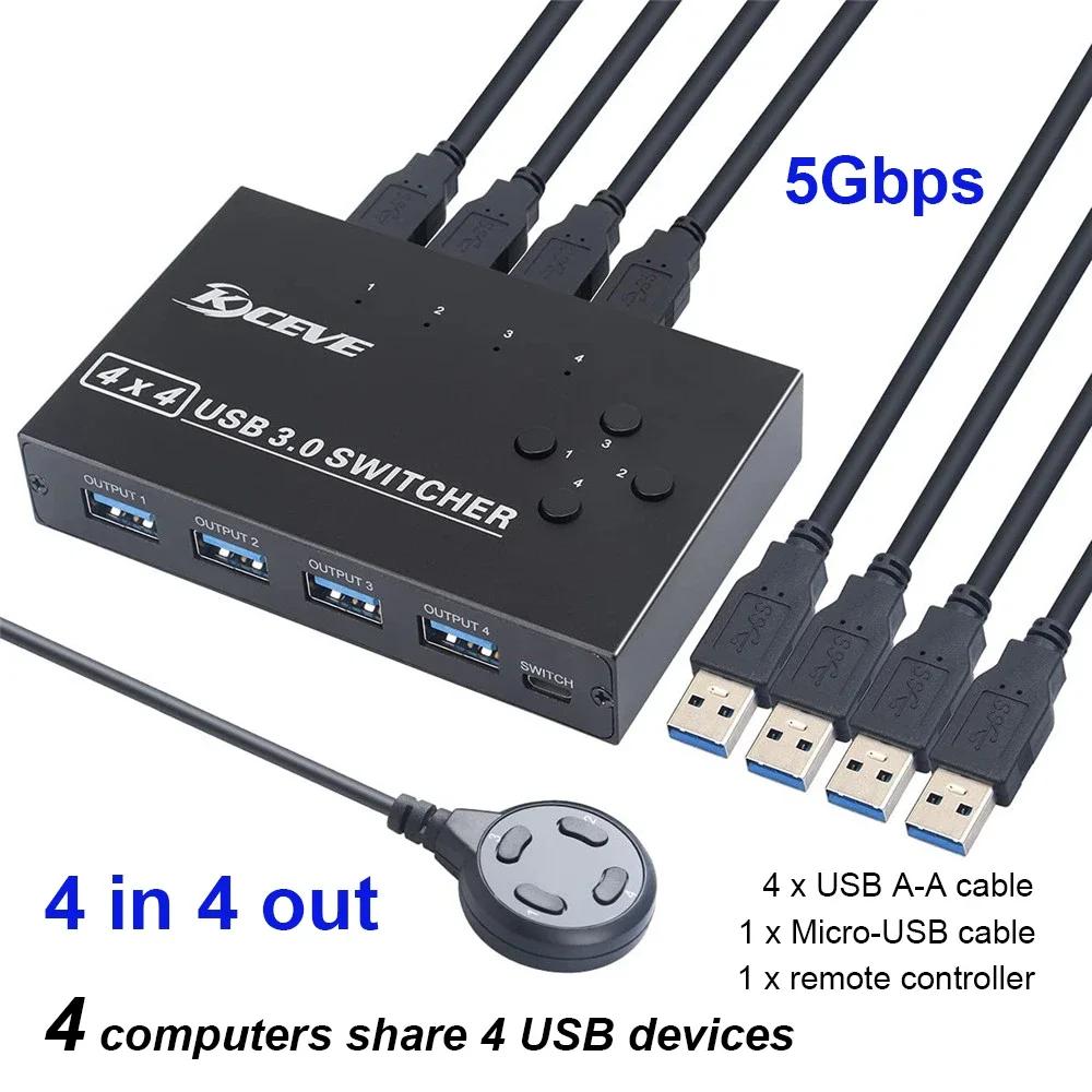 Usb3.0 Switcher Four In Four Out Distribution 4 4-port Splitter Aluminum Alloy Interface Key Converter Printer Sharer