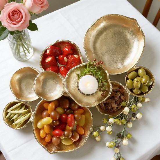 Cluster Serving Bowl Decorative 9-Grid Snack Serving Dish Multi Bowl Platter Modern Metal Tabletop Food Tray for Party Gathering Table Decor — buy online with free worldwide shipping!