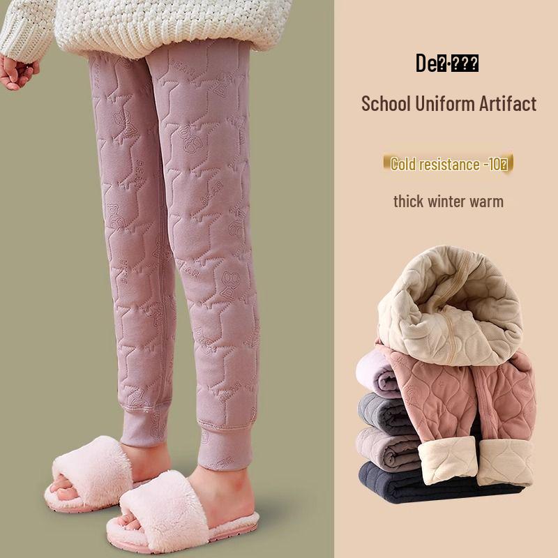 Kids' Winter Plush Liner Pants: Warm, Thick, Cotton, Belly-Protection Base Layer for Boys & Girls
