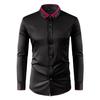 Men Dress Shirt Button Down Long Sleeve Shirt Lapels Rhinestones Slim Fit Formal Shirt for Business Wedding Party Prom Wear