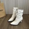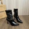 Autumn Pointed Thick Heel High Boots Women's Pleated Sleeve Knight Boots High Heel But Knee Boots