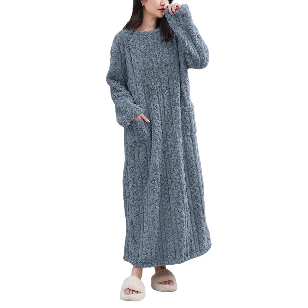 GlamollaMisse Long Fluffy Fluffy Long Winter Women's Pajamas, Dress, Nightgown, Loungewear, Winter, Cardigan, Pockets, Sleeves, Loungewear,