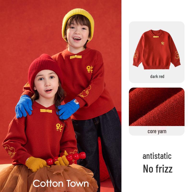 New Year's Red Knit Sweater for Kids - 2026 Winter Fashion Greeting Outfit