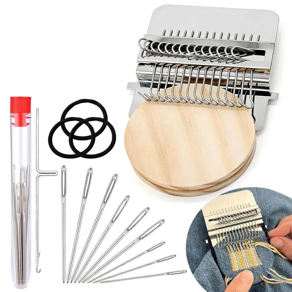 Wooden Frame Mini Loom Machine Metal Tool Mini Size Darning Machine DIY Handcrafts 12/14 Hook Small Woven Machine Mending Socks