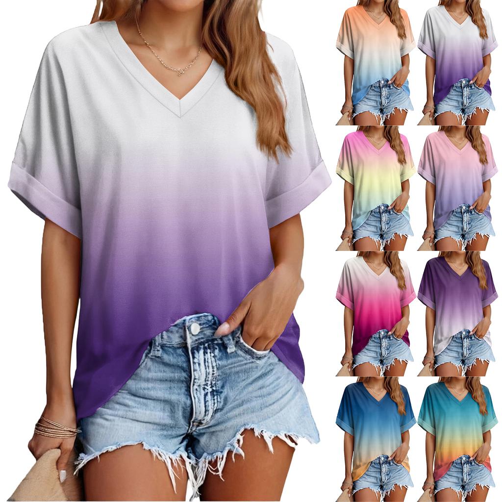 Women's Fashion Casual Everyday Versatile Gradient Print Slim-Fit Summer Short-Sleeve Top — buy online with free worldwide shipping!