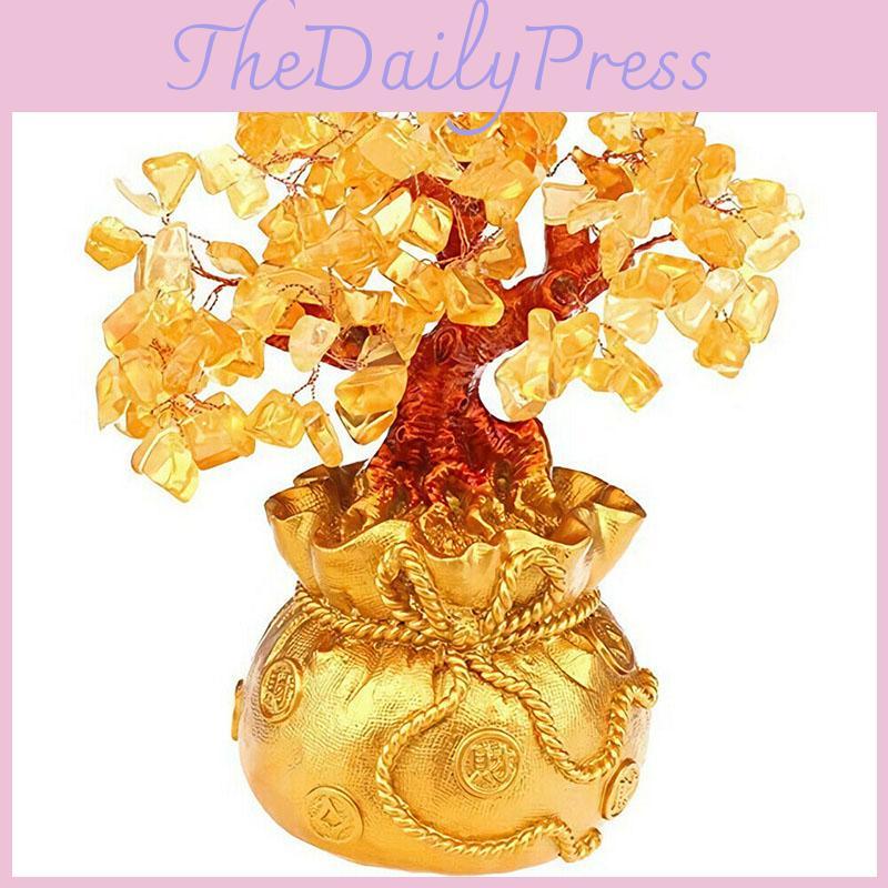 Elegant Feng Shui Money Wealth Tree With Yellow Citrine And Amethyst Crystal Gem