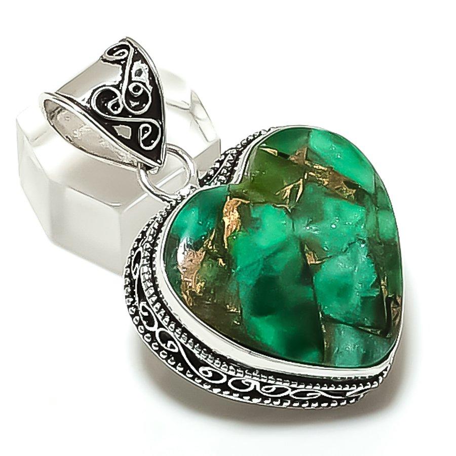 Natural Copper Malachite Gemstone 925 Sterling Silver Jewelry Pendant 1.81 ETC-13863 — buy online with free worldwide shipping!