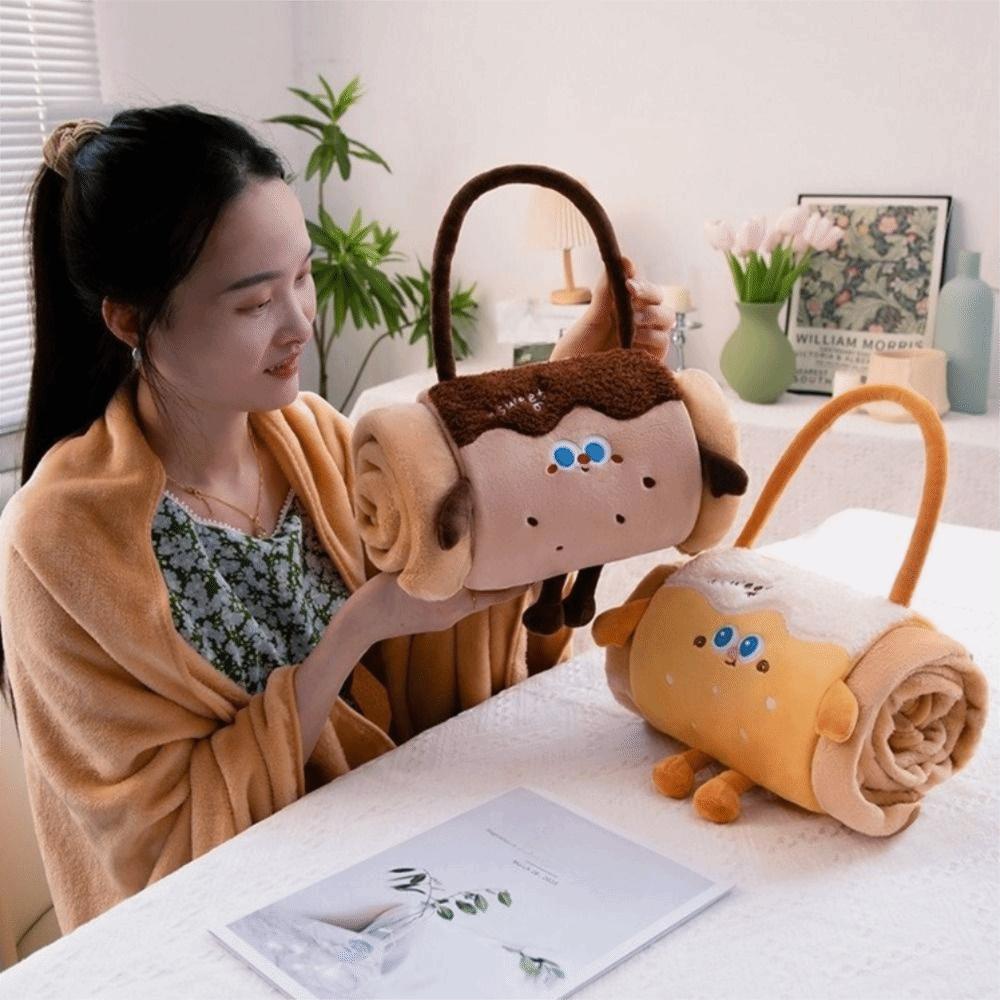 Cozy 2 In 1 Foldable Roll Blanket Warm Plush Air Conditioning Blanket Handheld Cartoon Nap Blanket Lunch Break