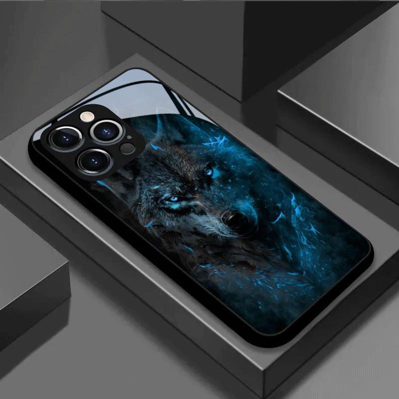 Midnight Wolf Shadow Pattern Tempered Glass Black Phone Case For Samsung Galaxy S23 S24 S25 Ultra Plus FE Shockproof Cover — buy online with free worldwide shipping!