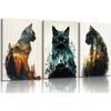 Funny Animals Canvas Wall Art Cute Black Cat and Forest Theme Pictures Wall Decor Abstract Sunset Mounta Nature Landscape Poster Painting Prints