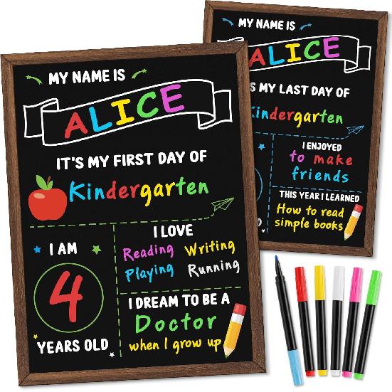 First & Last Day of School Board, 14 x 10.5 Inch Double Sided Back to School Chalkboard with Frame, Reble Wooden 1st Day of Preschool/Kindergarten — buy online with free worldwide shipping!