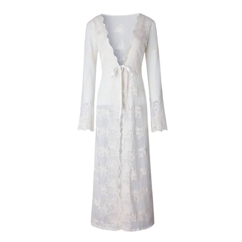 Long Dress With Lace Embroidery For Beach Vacation And Casual Wear — buy products online with free worldwide shipping!