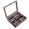 Walnut Wooden Glasses Case, Large Capacity Sunglasses & Watch Storage Box with Display Window for Travel and Home