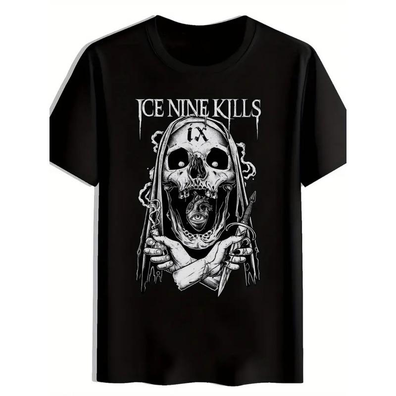 European Sizes Men'S Ice Nine Kill Gothic Heavy Metal T-Shirt - Tee with White Skull & Roman Numeral IX Graphic, Loose Fit Streetwear for Concerts,