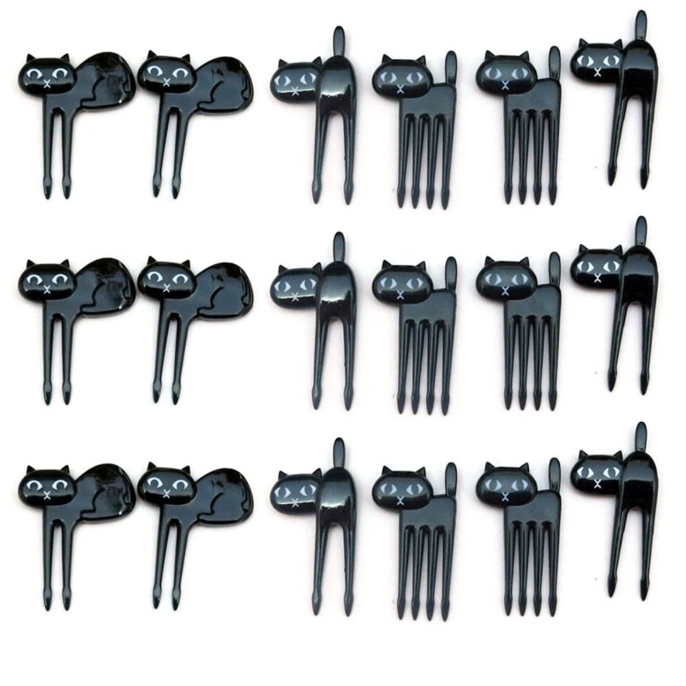 18PCS Mini Black Cat Fruit Fork Creative Dessert Fork Cartoon Fruit Toothpick Kids — buy products online with free worldwide shipping!