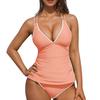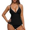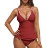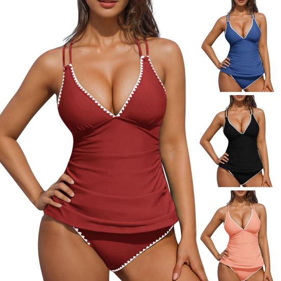 2Pcs/Set Women Tankini Set V Neck Ruched Tummy Control Tops High Waisted Bottoms Color Block Swimwear Summer Beachwear — buy online with free worldwide shipping!