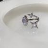 Unique Metal Ring With Iridescent Moonstone Design Adjustable Open Style For Women
