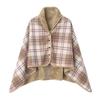 Flannel Wearable Blanket Plaid Home Office Chair Lap Blanket Comfy Poncho Throw with Buttons Winter Warm Soft Shawl Blanket