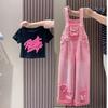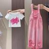 Adorable Girls Summer Outfits Loose Fit Denim Suspenders Set With Colorful T-shirt