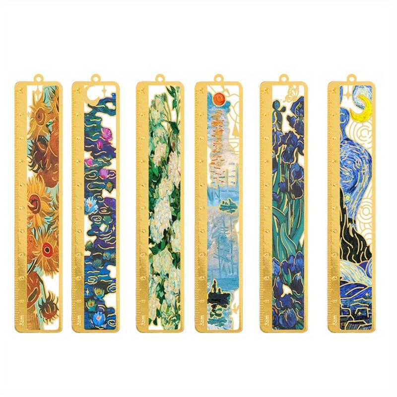 6PCS/SET Retro Oil Painting Metal Hollow Flower Bookmark - Students Literary Brass Ruler Bookmark School Holiday Gift — buy online with free worldwide shipping!