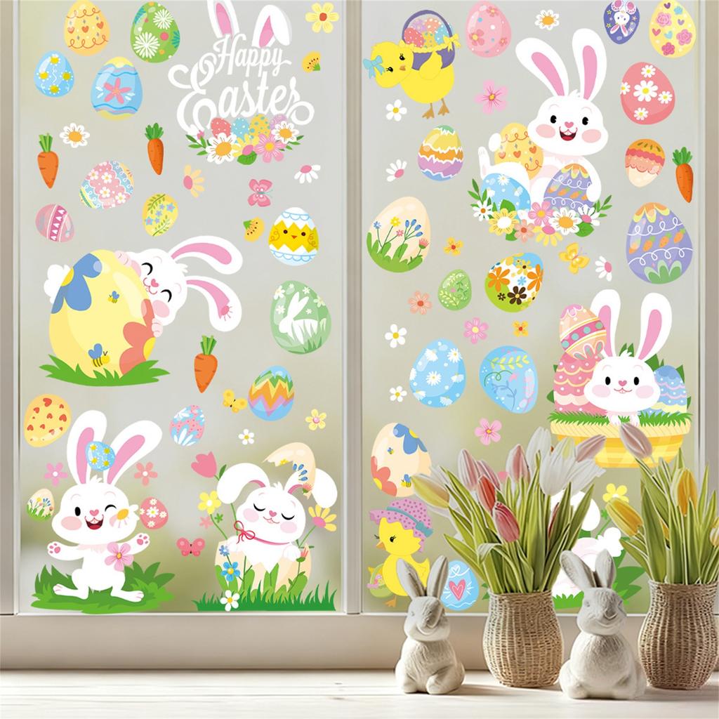 Easter Stickers, Cute Bunny Easter Eggs, Static Stickers, Window Display , Glass Decorations, Window Stickers