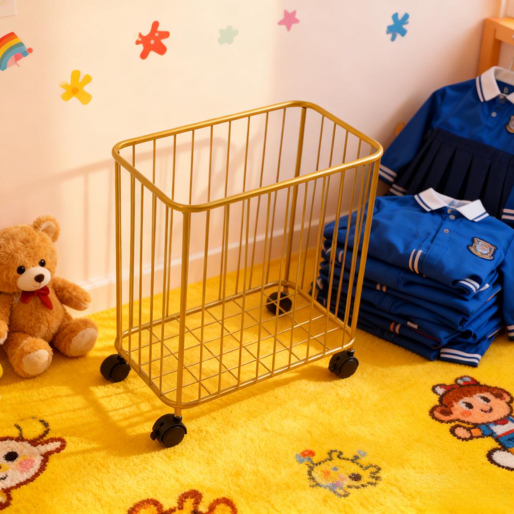 Gold Metal Openwork Laundry Hamper Cart with Wheels, Large Capacity, Foldable Storage Organizer, Rolling Laundry Sorter Basket — buy online with free worldwide shipping!
