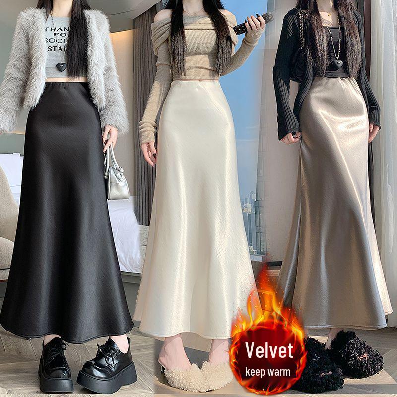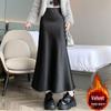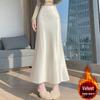 2025 Autumn High-Waisted Plus Velvet A-Line Skirt - Double-Layered Wave Polyester Fabric, Simple OL Commuting Style