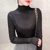 Women's High Neck Ruffle Silk Lurex Long Sleeve Shirt - Elegant Striped Base Layer for Autumn/Winter
