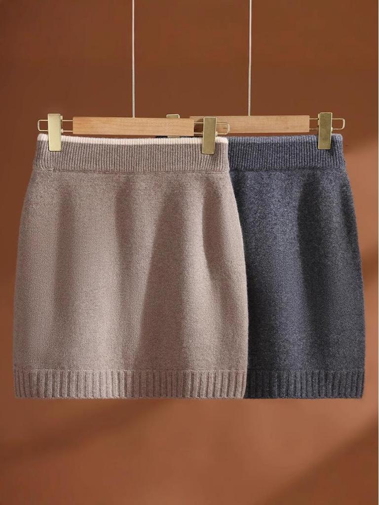 100% Pure Wool Knit Mini Skirt – Women's Elastic Waist, Versatile Hip-Hugging Design for Autumn/Winter. — buy online with free worldwide shipping!