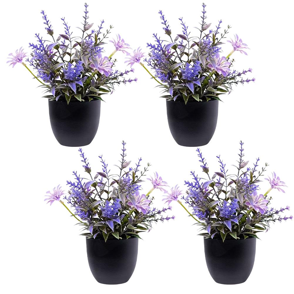 4pcs Lavender Artificial Plants In Pots Perfect Greenery for Home and Office Decor Compact and Maintenance Solution