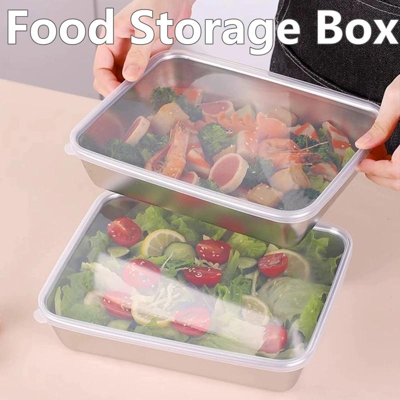 Food Storage Trays Rectangle Preservation Box with Plastic Cover Stainless Steel Multi-Function Rustproof Barbecue Food Storager