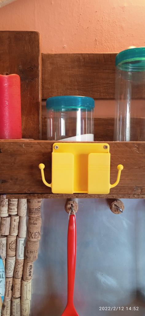 Como se describe, equipado con adhesivo de doble cara, pero también pondré dos clavos