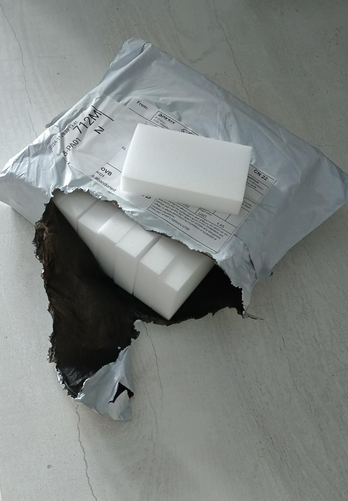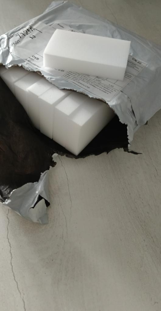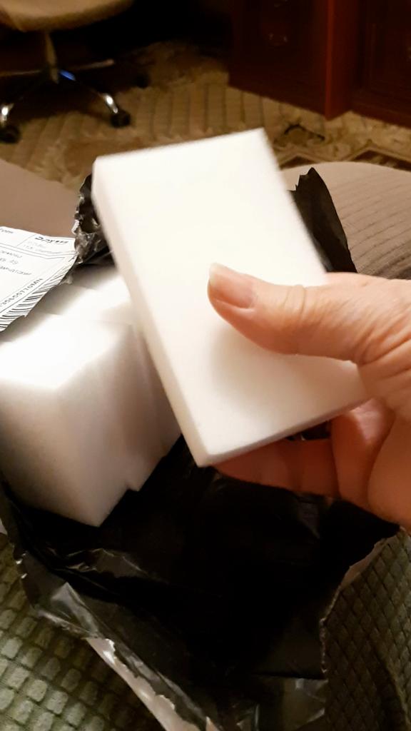 ESPONJAS DE MELANINA . Pido constantemente. Me he acostumbrado mucho a ellos. Mis ayudantes indispensables. Qué es una esponja de melamina. La esponja de melamina es un limpiador en forma de bloques blancos. Está hecha de un material sintético: melamina. Este compuesto de cloruro de cianuro y amoníaco elimina bien las manchas de diversos orígenes (grasa, óxido, cal). En la fabricación de la esponja, la melamina se espuma, se satura con aire y se le confieren propiedades abrasivas.. 💥 Pedí un juego de 10 esponjas de tamaño 100*60*20. 💥 Empaquetados en sobre postal. Llegaron en perfecto estado. 💥 Las esponjas eliminan muy bien las gotas de grasa endurecida, la cal, las manchas de óxido, limpian la suela blanca del calzado. Los uso más a menudo en seco, sin añadir agua. Cosa genial. Más seguro que los limpiadores convencionales. Una vez que lo pruebes, no podrás renunciar a él.. ¡Les deseo a todos solo compras exitosas🛍!💋💋💋