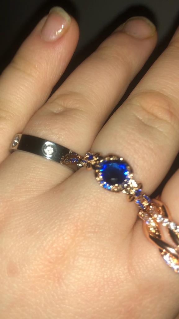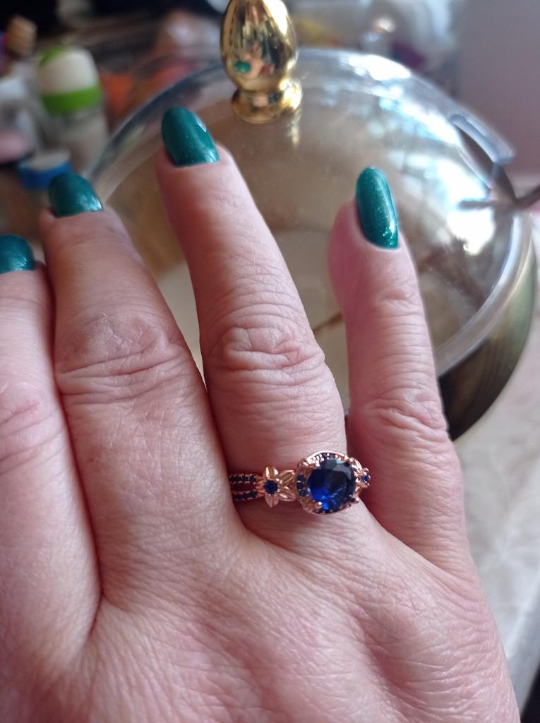 Un anillo muy bonito y la piedrecita solo que se ve demasiado rojo que es cobre pero así todo es bonito gracias