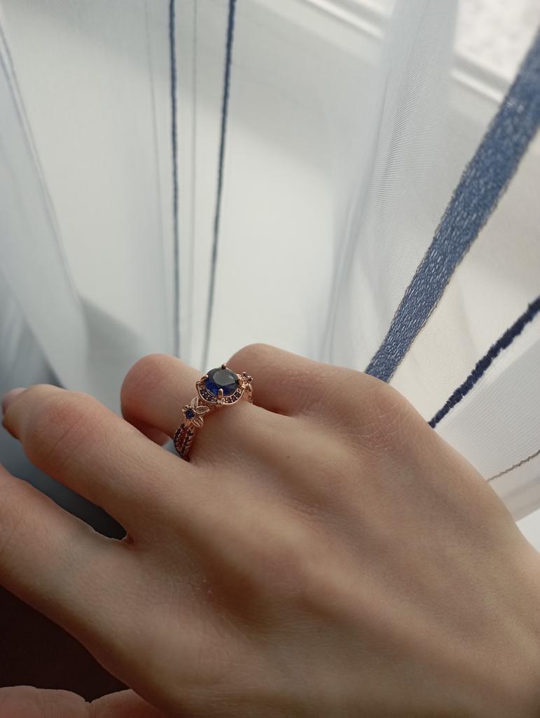 "Anillo Vintage de Color oro rosa estilo flor anillos de piedra azul de corte redondo para mujer anillo de garra de lujo regalos de aniversario — compra barato en la tienda en línea Joom