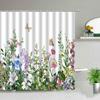 Cortina de ducha de flores blancas y mariposas rosas, estampado Floral, tela de cortina de baño de poliéster impermeable para decoración de bañera