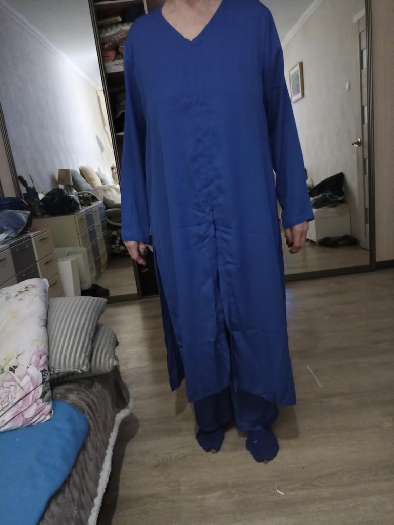 Hola. El traje está cosido de forma incómoda, los pantalones son demasiado grandes y la túnica no le queda nada bien; Es una pena 😭... Talla 2XL