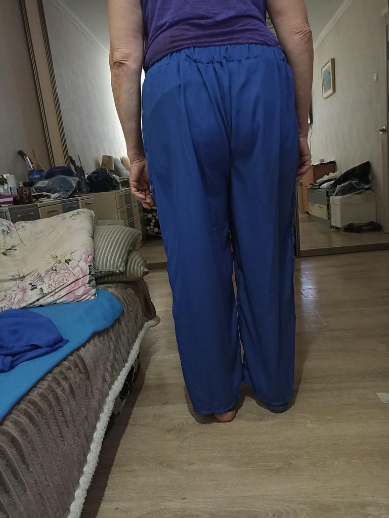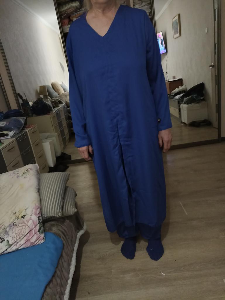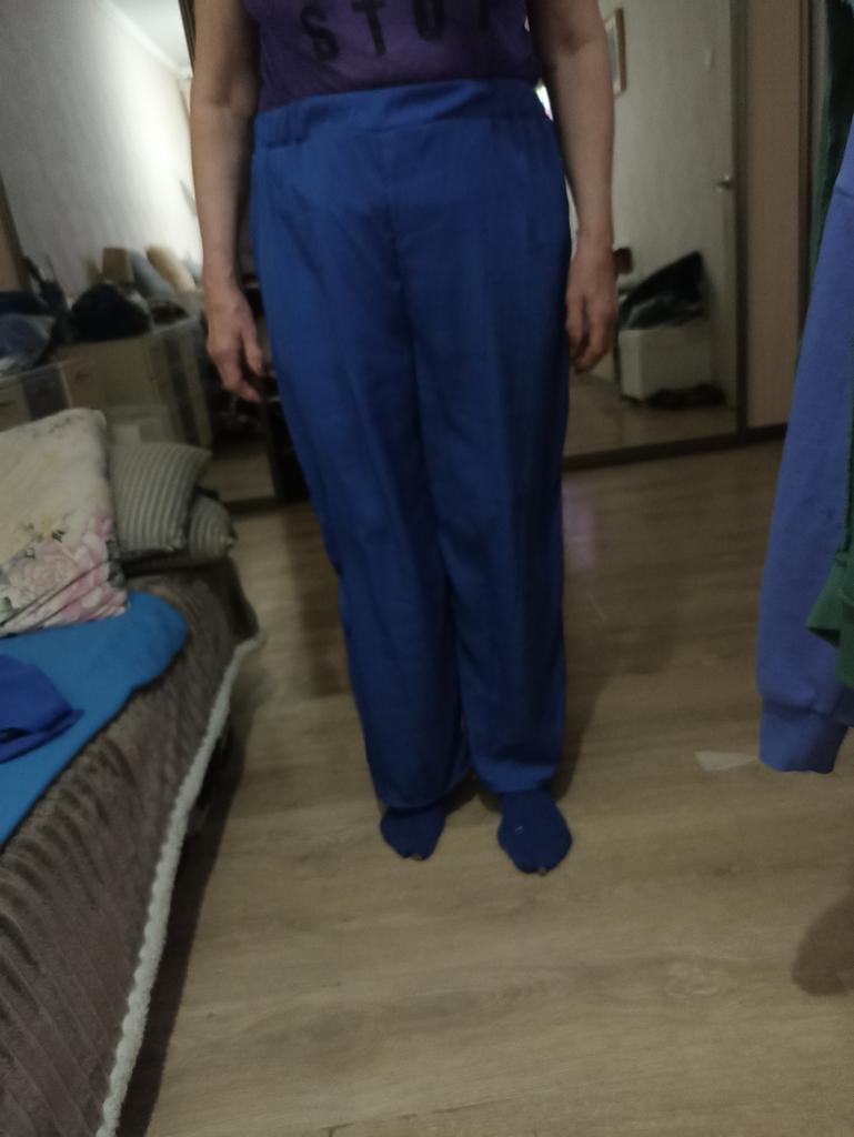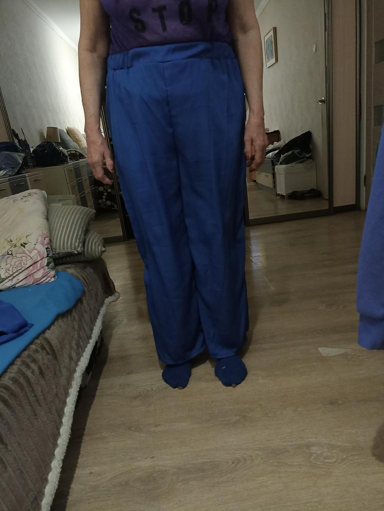 Los pantalones del traje son demasiado grandes. La parte superior del traje es perfecta. Tenía miedo de que me quedara pequeño, ya que la tela de poliéster no se estira, así que cogí una talla más grande para que quedara más holgado. Para la talla 56 tomé 4 XL. Me gustó el color del traje. Puedes usarlo como un conjunto y puedes combinarlo con otras cosas, faldas, shorts, pantalones. Los puntos están un poco apretados, pero en general estoy satisfecho. Gracias Jum y al vendedor.