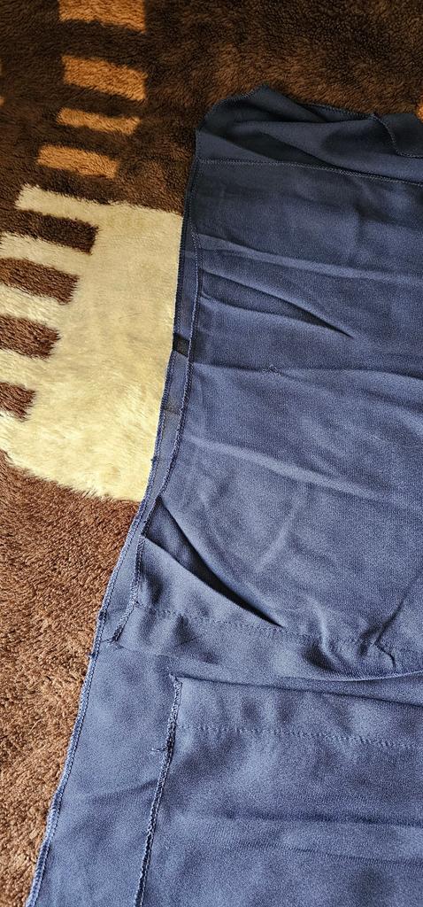 El material es bueno, como gasa gruesa. El color es como en la foto. En el mío el color exacto es donde está la manga, en otros la cámara lo mostró mal. Solo que la confección no es muy buena, pero todo se puede corregir. Se ajusta a los parámetros 104-90-106, talla XL.