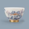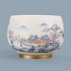 Taza maestra de paisaje blanco y PINTADO DE AZUL a mano con incrustaciones de cerámica dorada, juego de té de kung fu, taza de té, tazón de té especial de alta gama